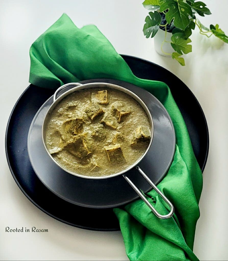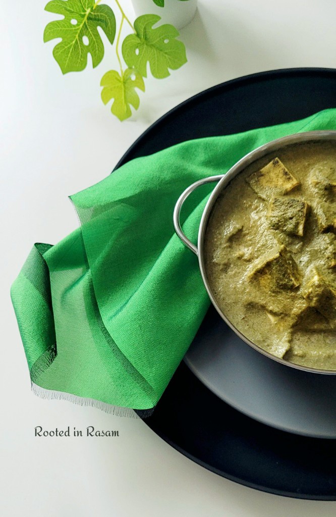 This ensures a brighter green gravy, but sometimes the spinach tastes a bit too raw for my liking. So I stuck to my way, even though it may mean getting a B+ for appearances 🙂 and an A for taste🙃