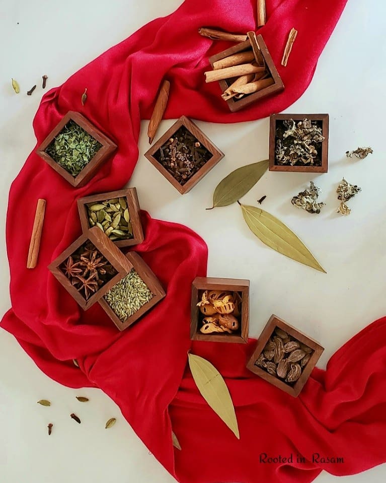 Every Indian cook has a Masala Dubba(box) filled with their most used spices. In the South its called Anjarai petti – a five partitioned box, that has over time morphed into a seven partitioned one. I have a North Indian and a South Indian one ( featured many scroll downs below )