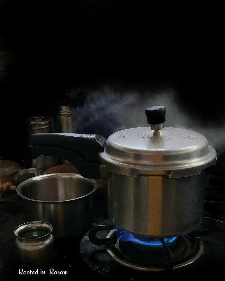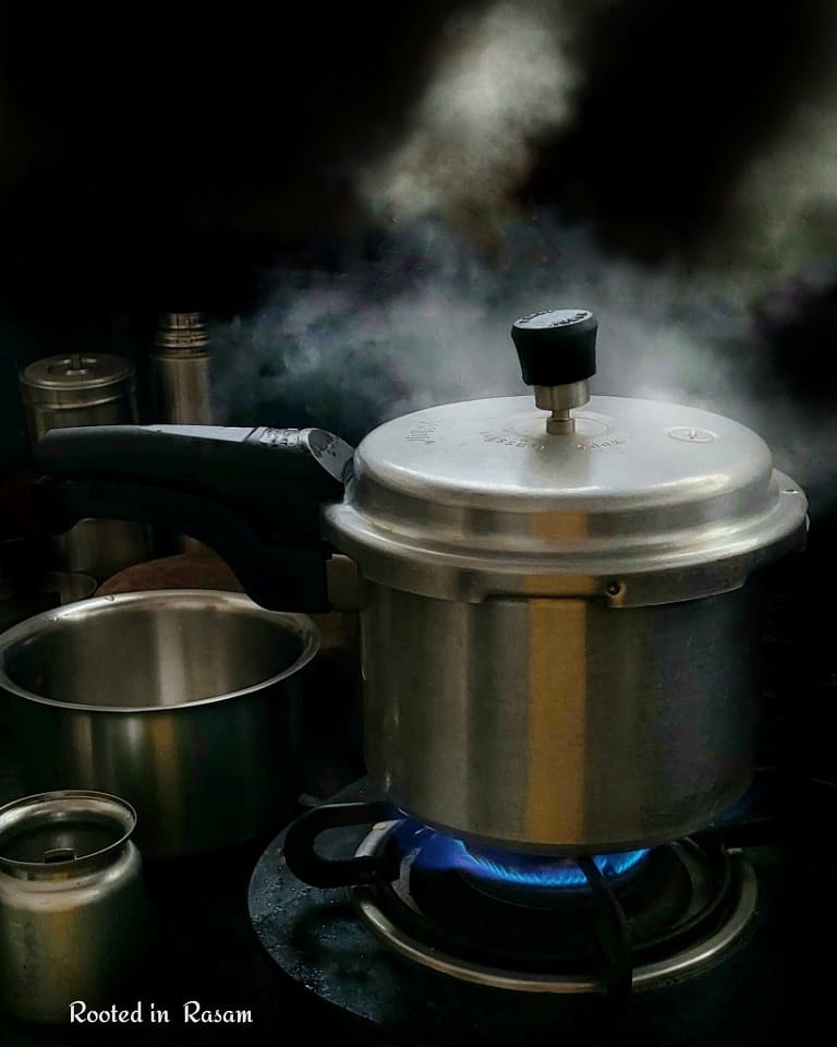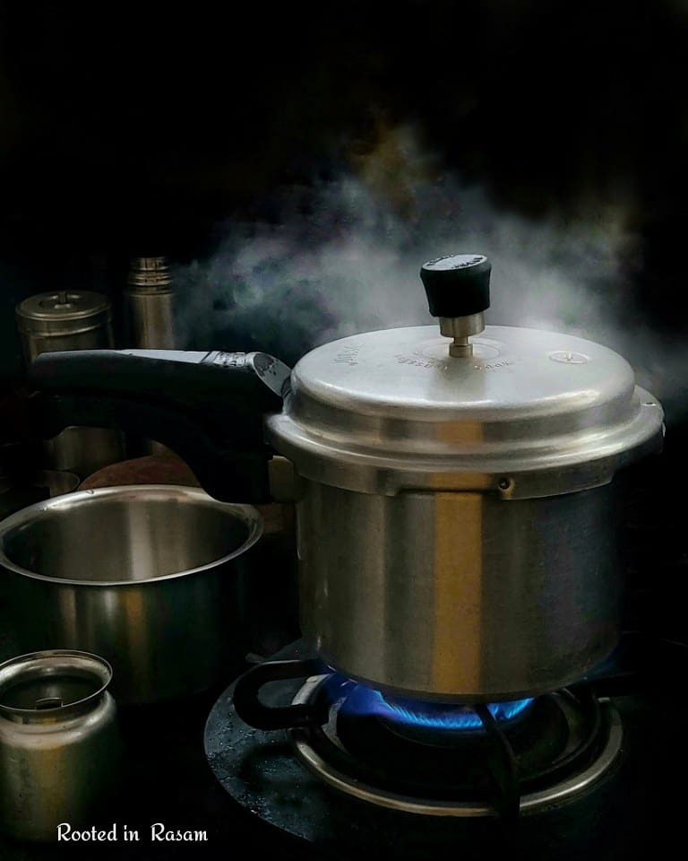 It’s not surprising that most recipes read, “Pressure cook for Moonu (3) whistles” or “Rendu whistle vecha porum” ( 2 whistles will do) or similar.