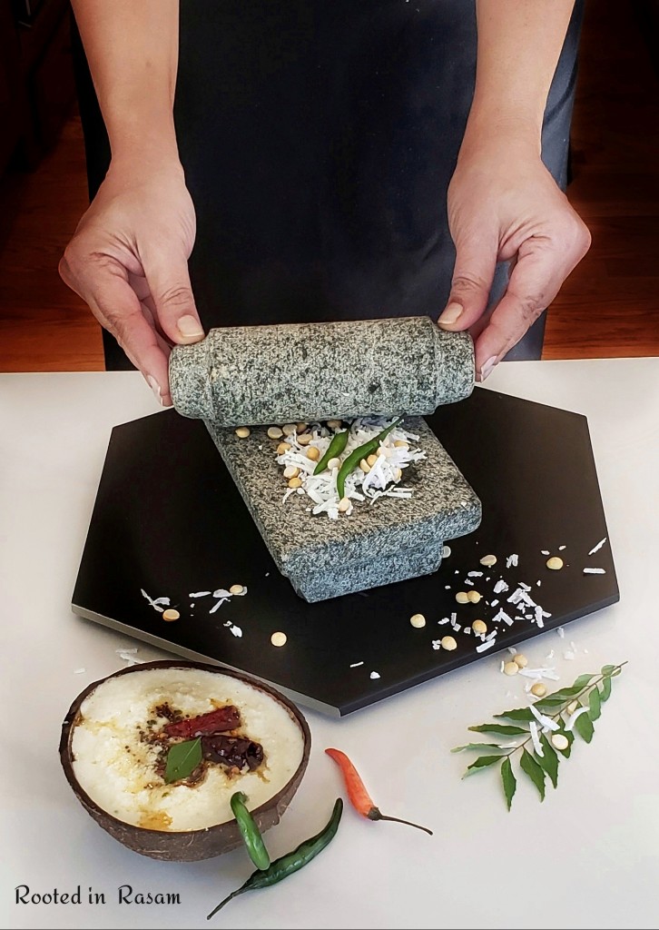 Pictured here is the Ammi, the traditional Indian grinding stone and roller. Similar to this is the Mexican Metate y Mano.