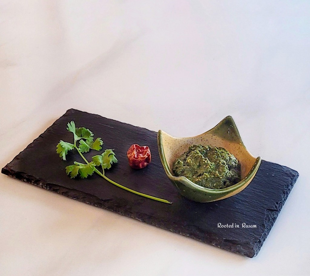 A herb I cannot do without in my cooking, Kothamalli (Coriander) presented here in a Thogayal (Chutney) that I often make when I have a surplus of it. A deviation from the typical TamBrahm recipe, I have tweaked it to my taste.