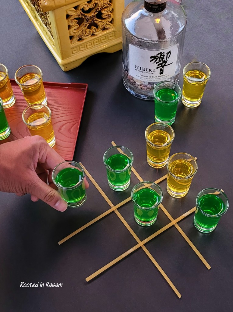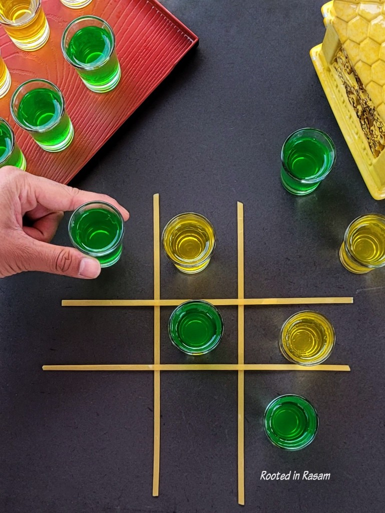 Jello shots and some Tic Tac Toe on a glorious summer evening, on a picnic dinner in the backyard !