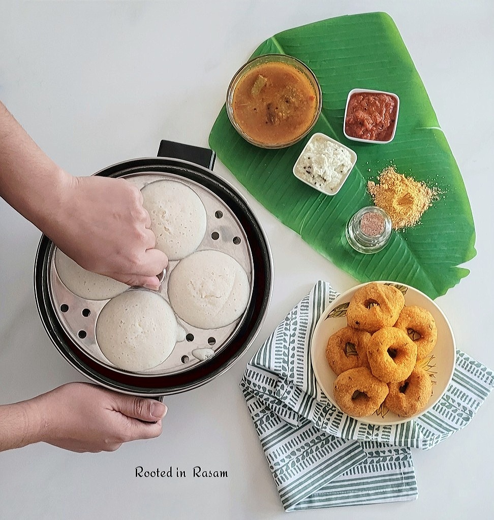 Delicous with a simple Molaga podi and oil (spiced lentil powder) on a busy day, and with a side of Medhu vadai and chutneys for a leisurely weekend breakfast!