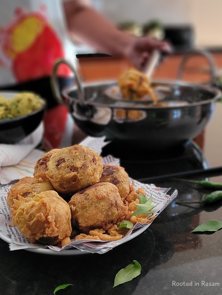 Something about the rain and the smell of something being dipped in hot oil go together! With a glass of tea, it’s complete! Urulakizhangu (Potato/Aloo ) Bonda, deep fried and dripping in oil is perfect for a monsoon snack