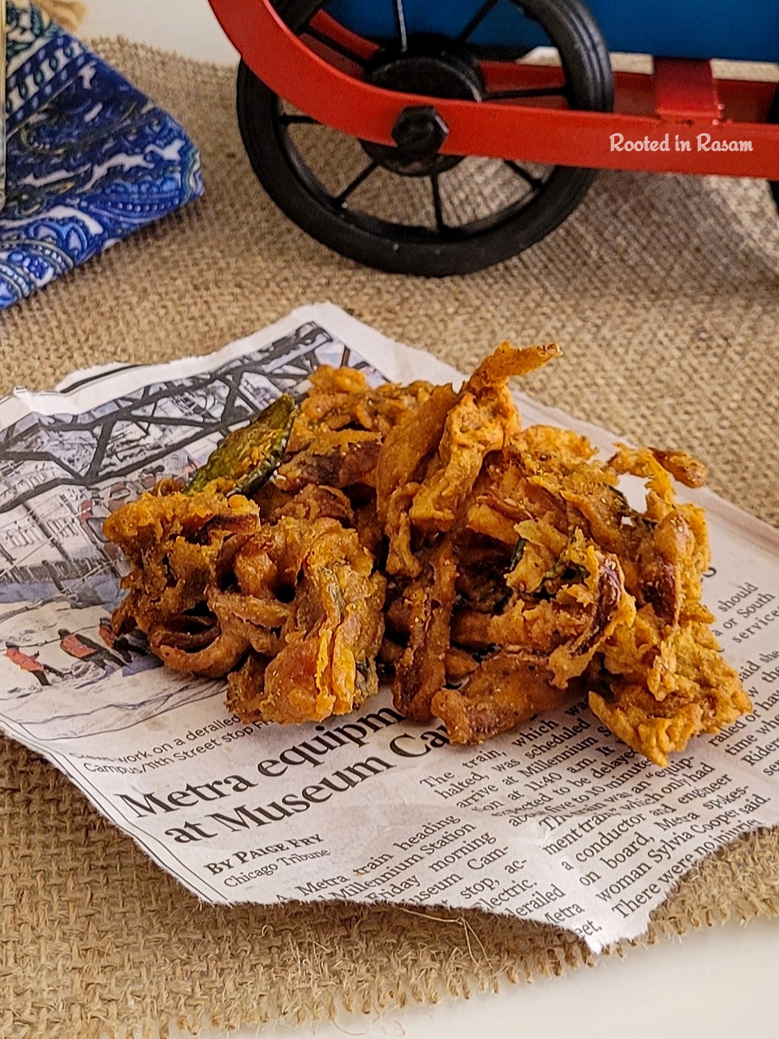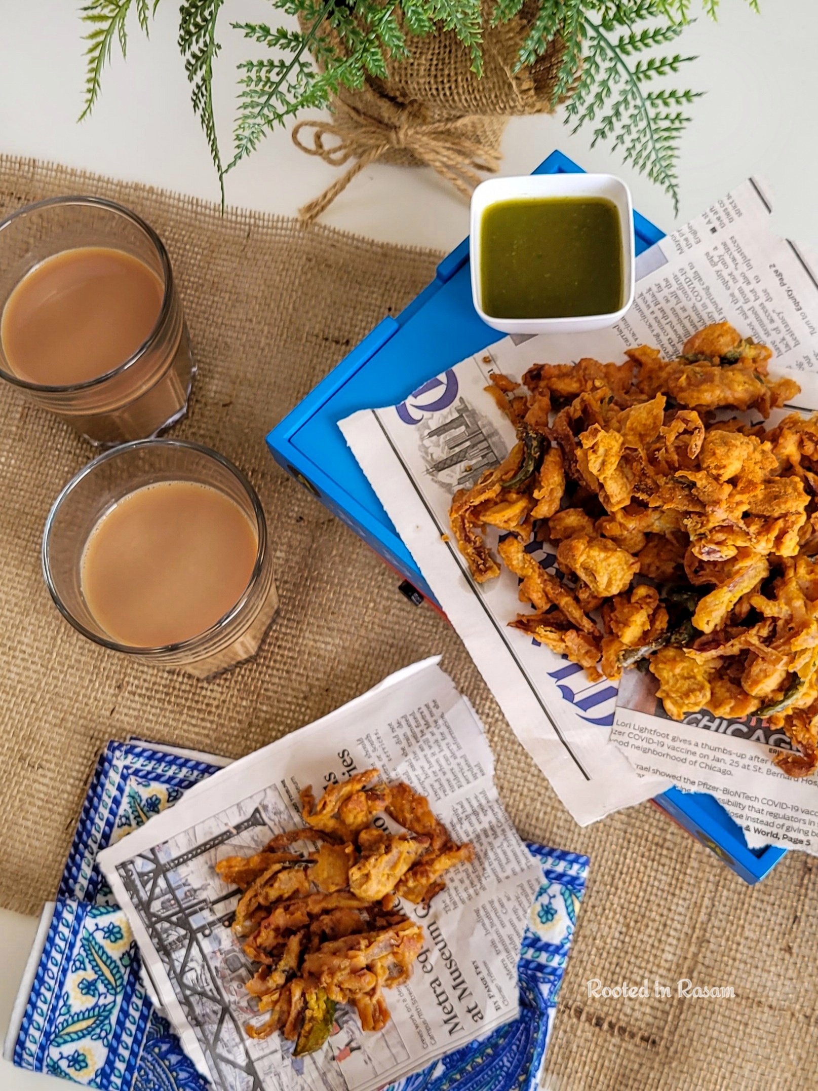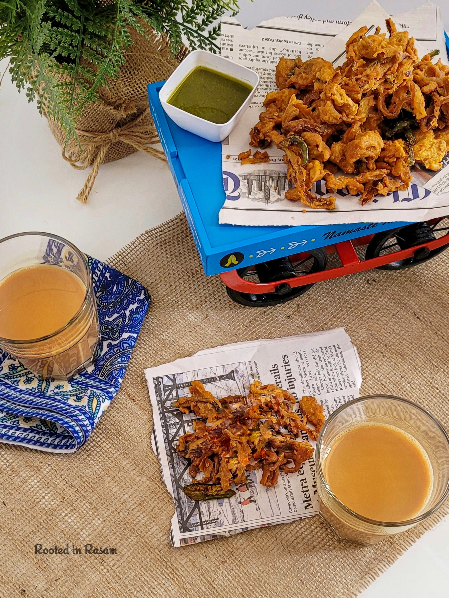 One of the most addictive rainy day snacks, the Indian version of onion rings -Pakoda.