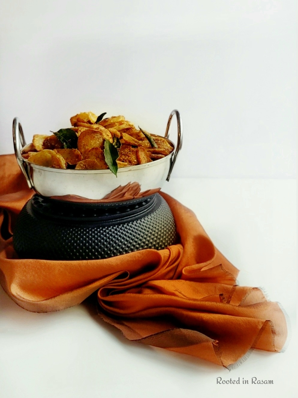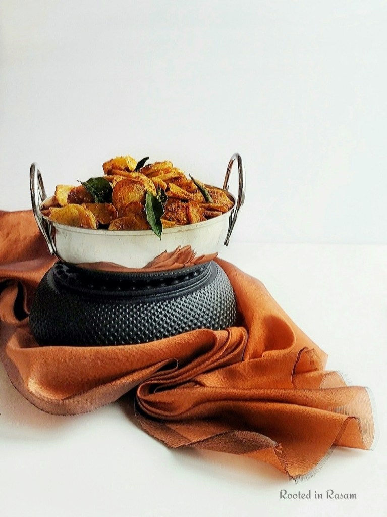A simple air fryer recipe, with minimal spices Taro – Seppankizhangu or Arbi, that turns out really crisp and delicious. A great side dish with any rice dish or served as is as an appetizer.