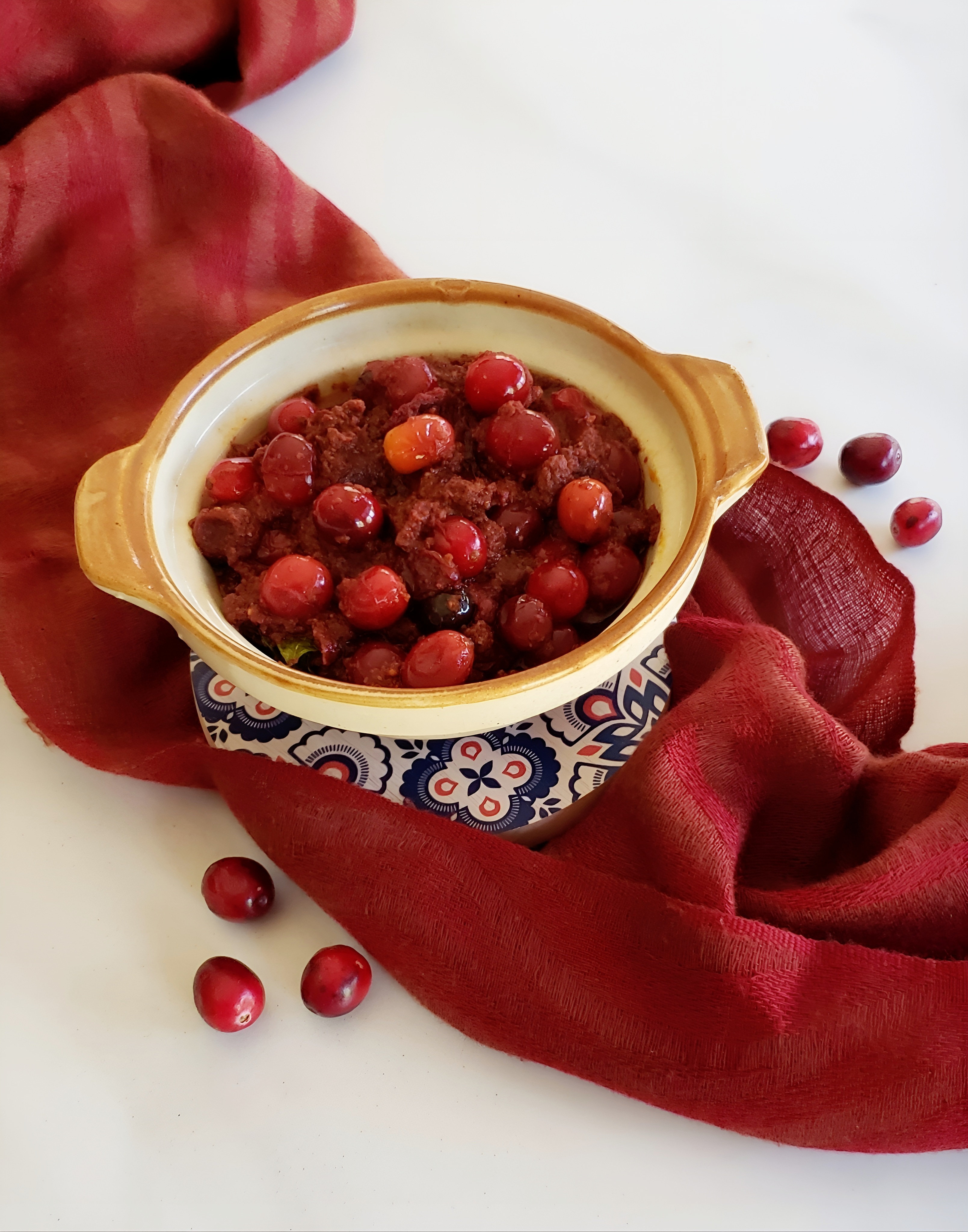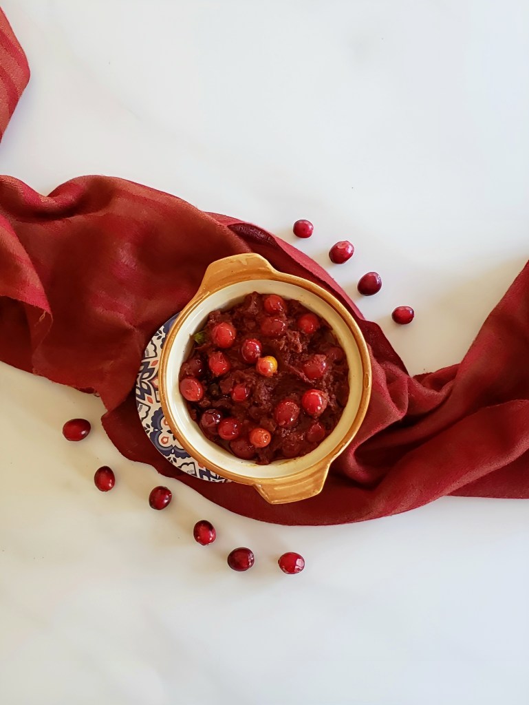 A bottle of tart and spicy Cranberry pickle to celebrate International Hot and Spict food day