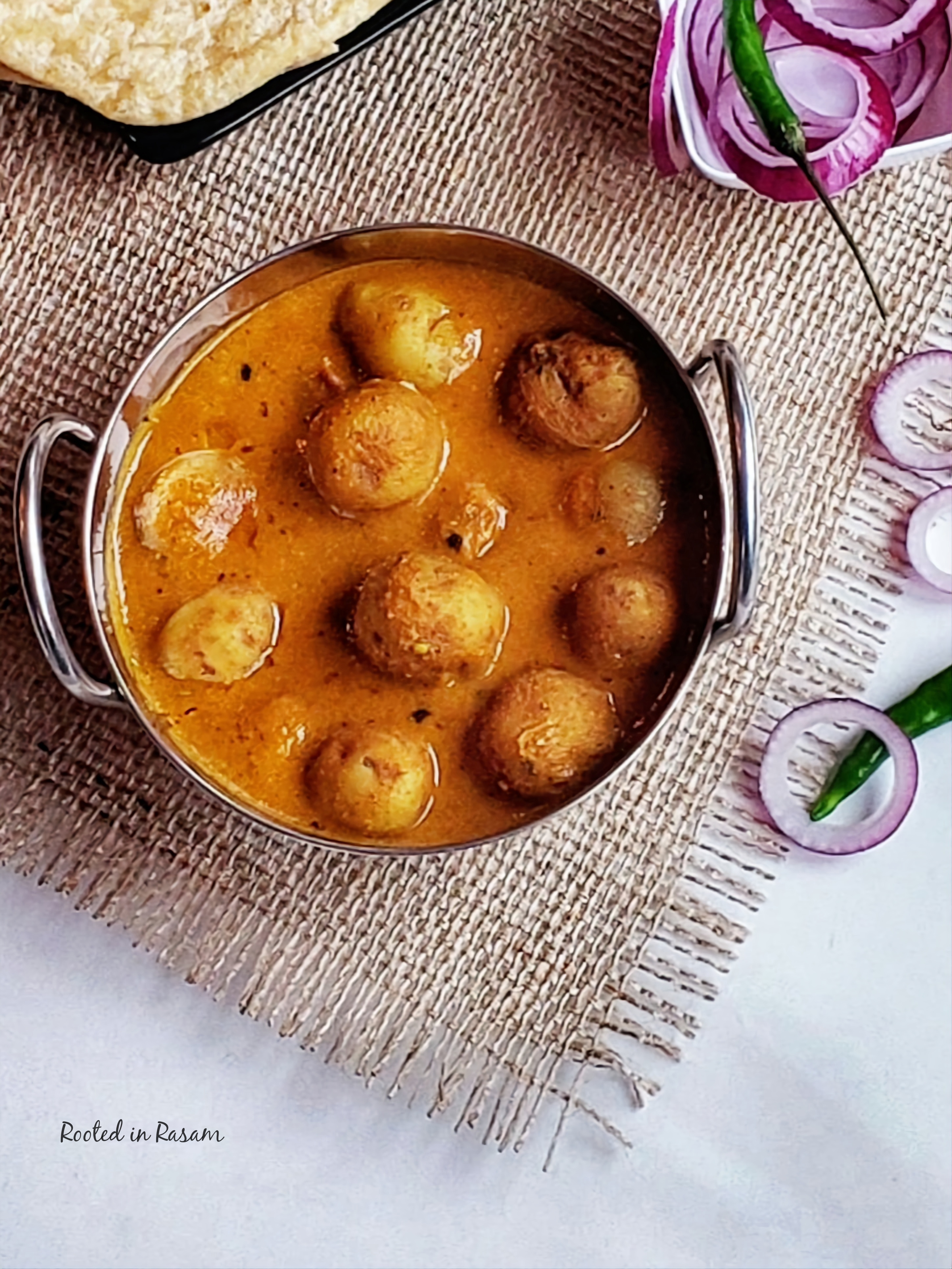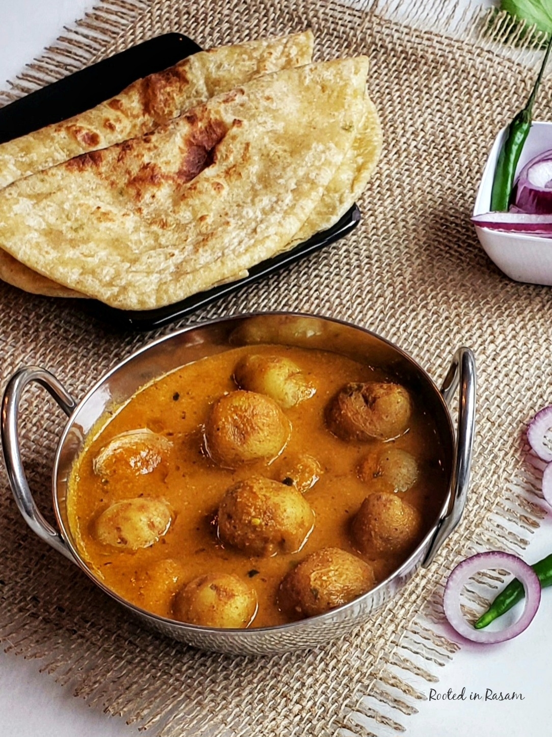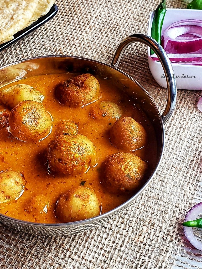An all time favorite, Dum Aloo is baby potatoes steam cooked in a rich and flavorful gravy